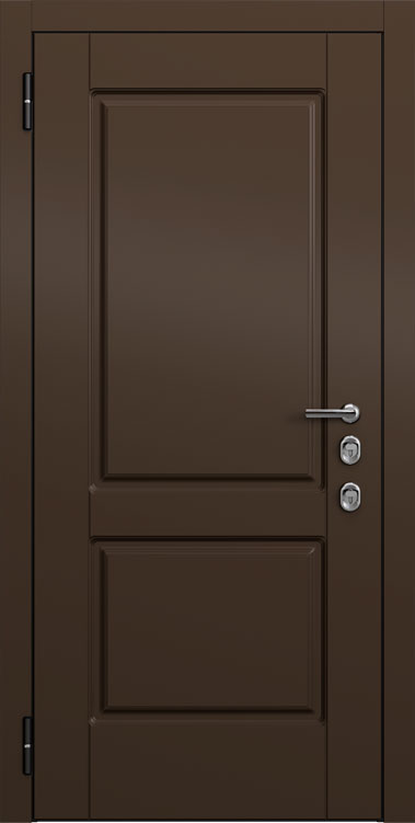 Topla, tamnija nijansa i klasična panelna struktura daju ovom modelu ozbiljan i stabilan karakter. Posebno će se dopasti kupcima koji žele vrata koja deluju masivno, pouzdano i vizuelno „jako“.